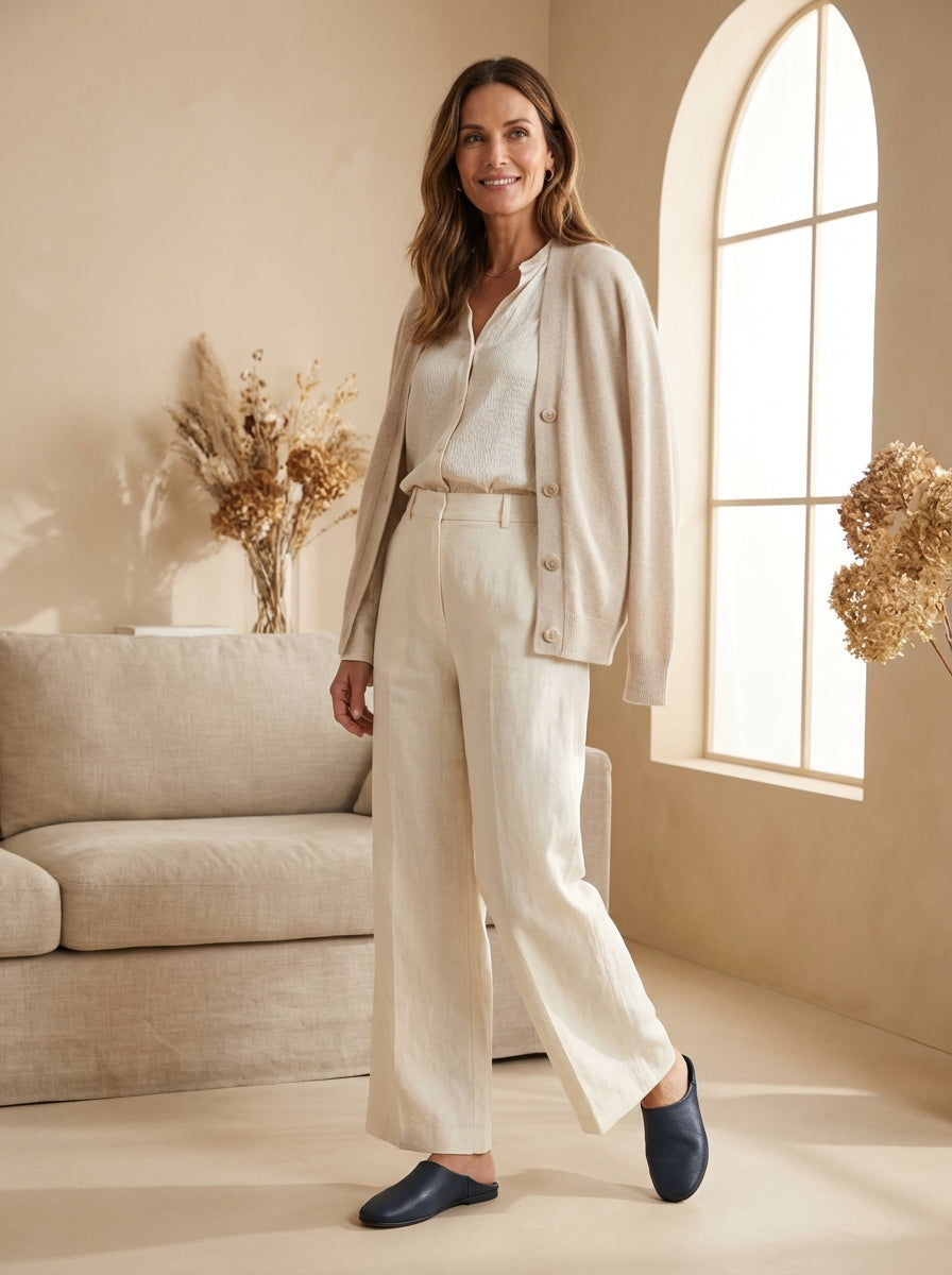 • Un pantalon en lin écru et un t-shirt blanc (le summer côtier)