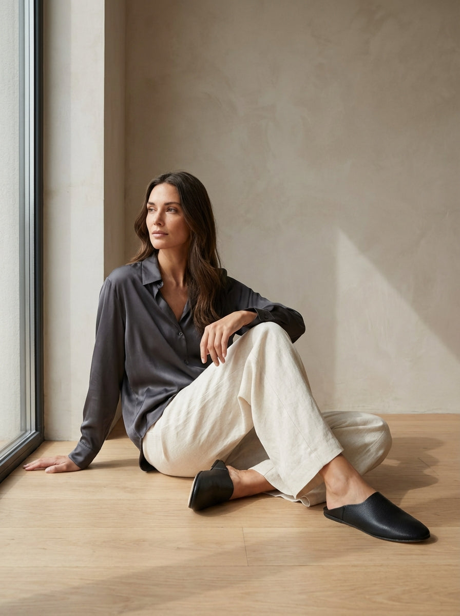Le noir AYMA, c'est ce que Coco Chanel aurait créé si elle faisait des babouches. L'élégance absolue. La simplicité radicale. Le chic qui ne se discute pas.